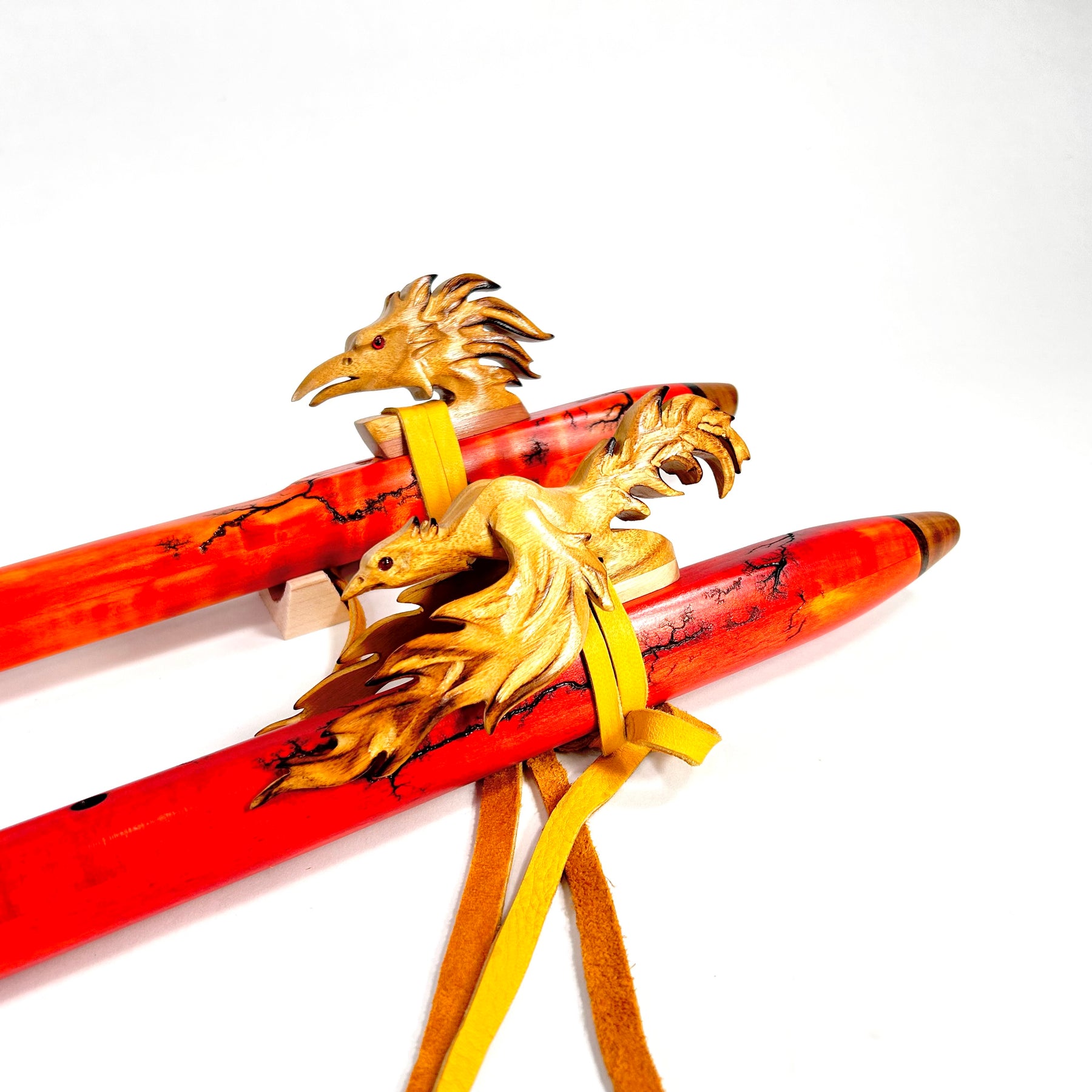 Curly Maple "Fire Dyed" Phoenix Native American Flute Series -Mid Range- In Stock