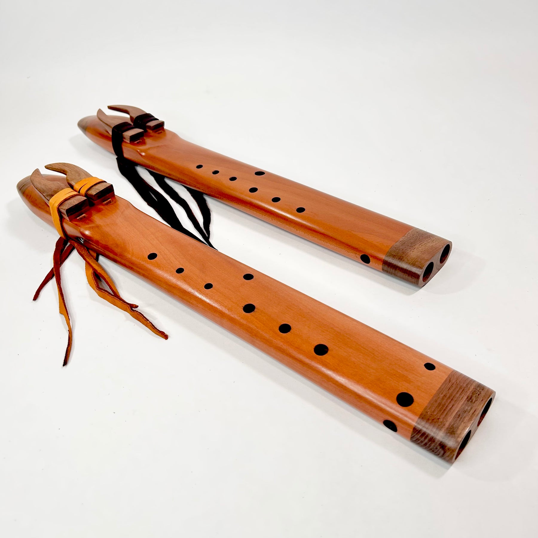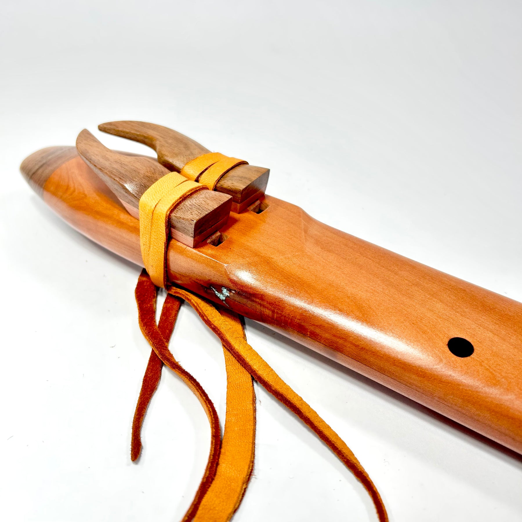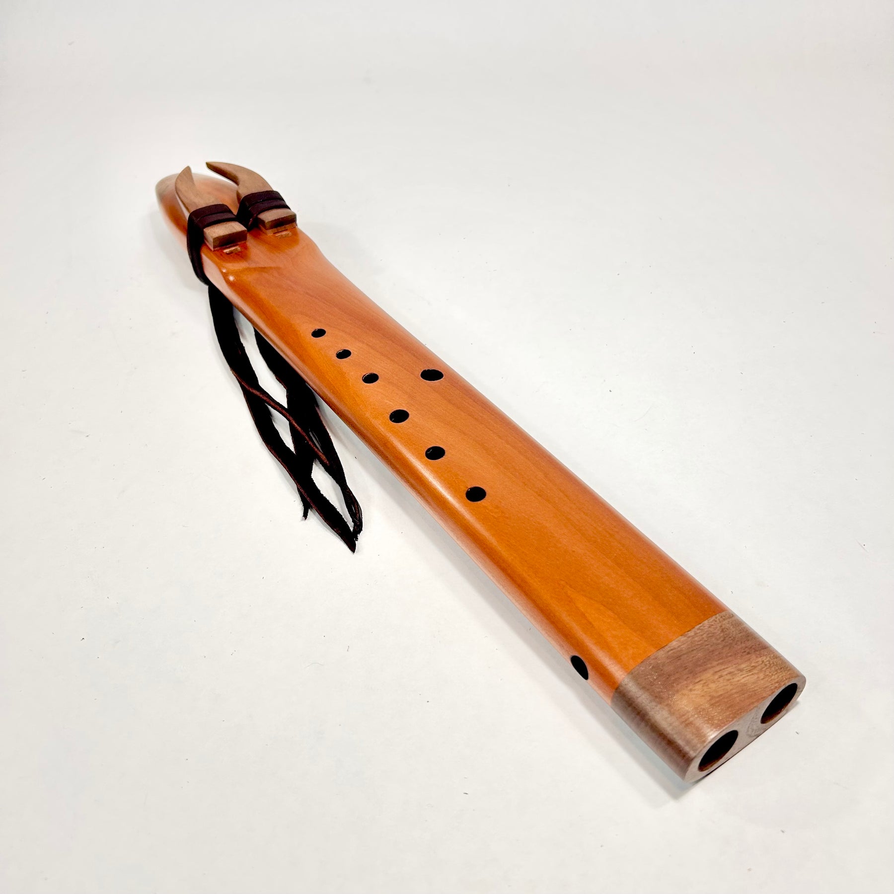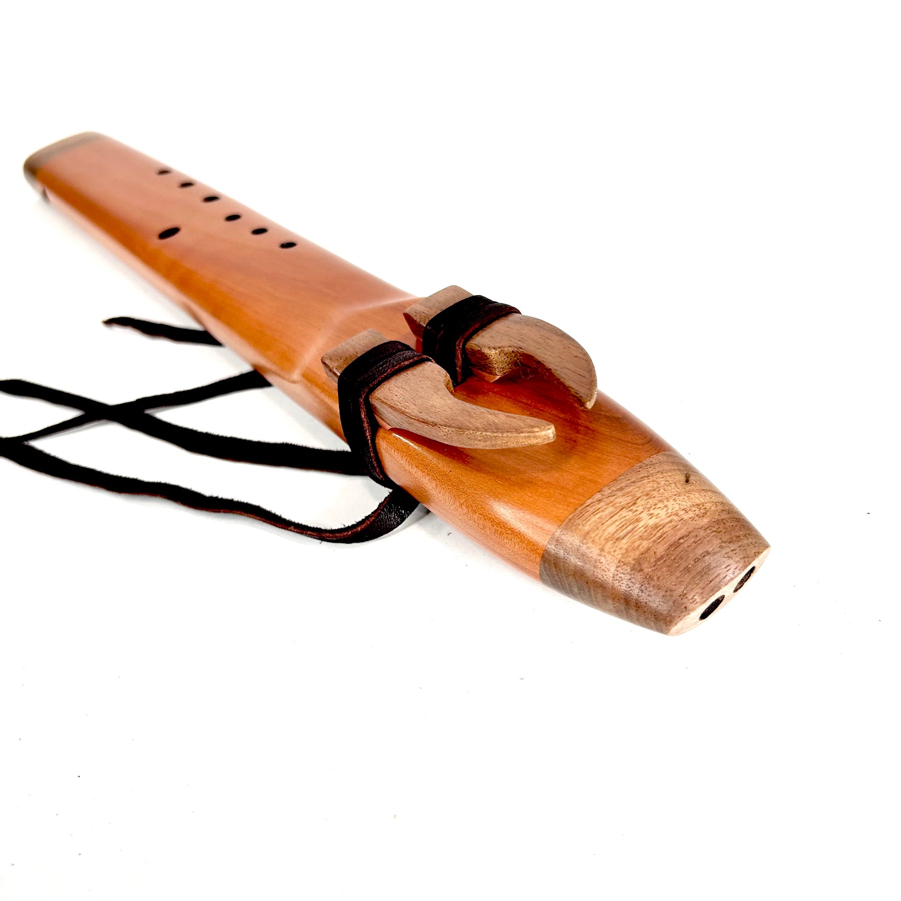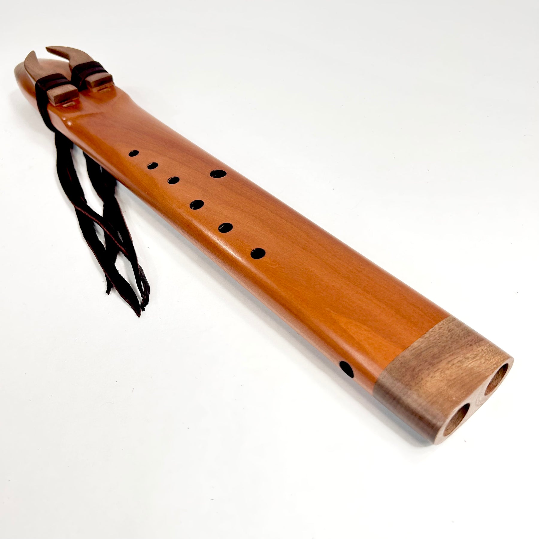 A beautiful Hardwood Alternating drone flute... Figured Madrone with Walnut Accents... we have 2 different scales one is A 440 Hz NAF minor the sound is sweet .. a very percussive and responsive tone. The other is the North American Indigenous scale, and sounds awesome in the alternating drone flute configuration. A heart opening and soothing sound!