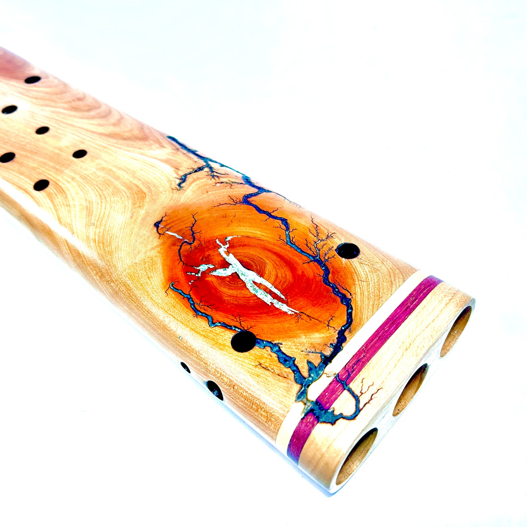 Madrone Triple Drone Flute with Lichtenberg art and Turquoise-Eb NAF minor-In Stock