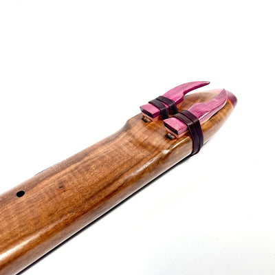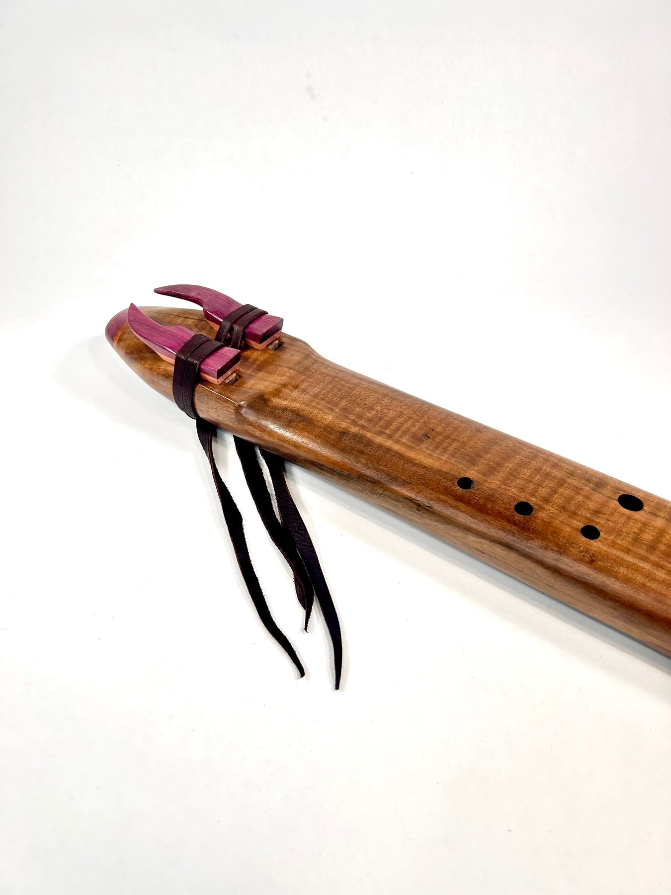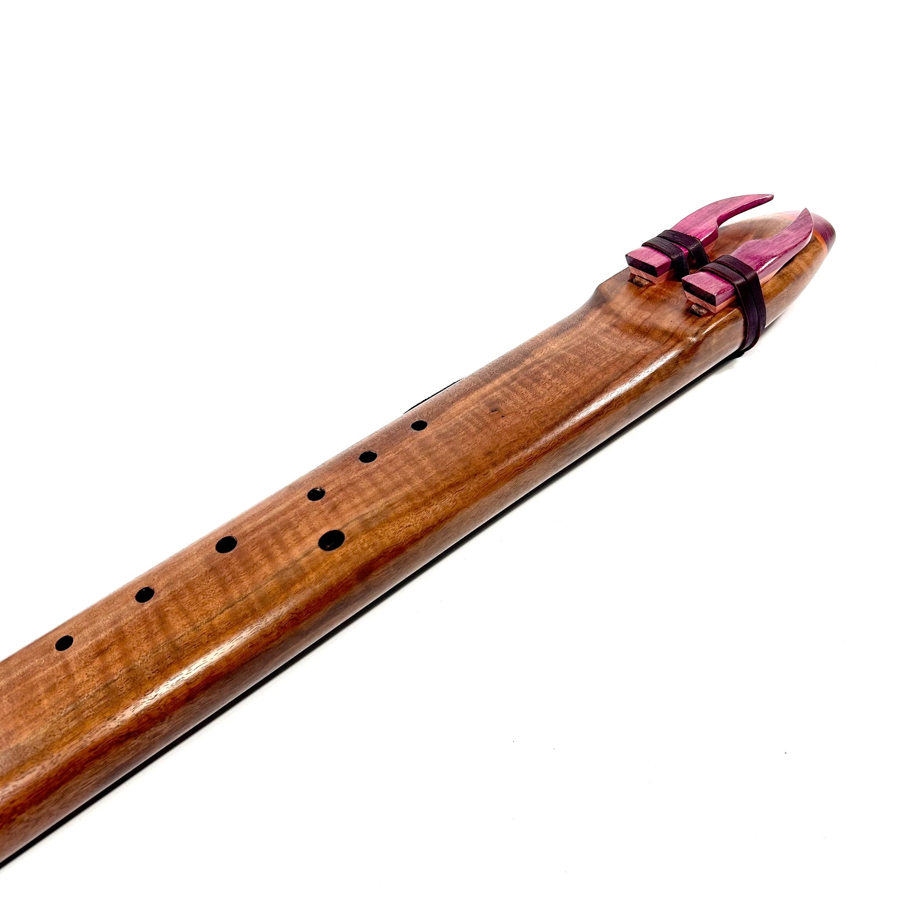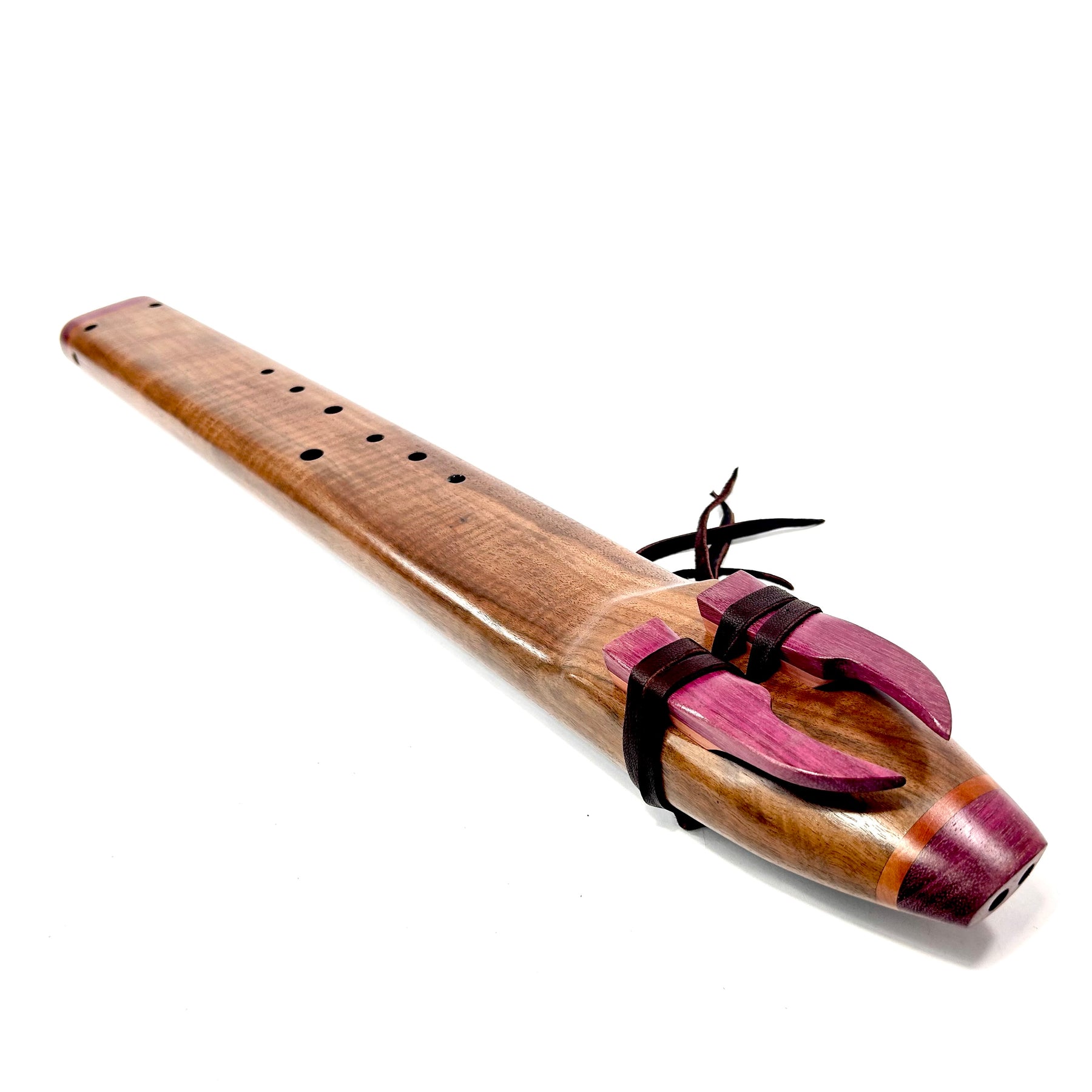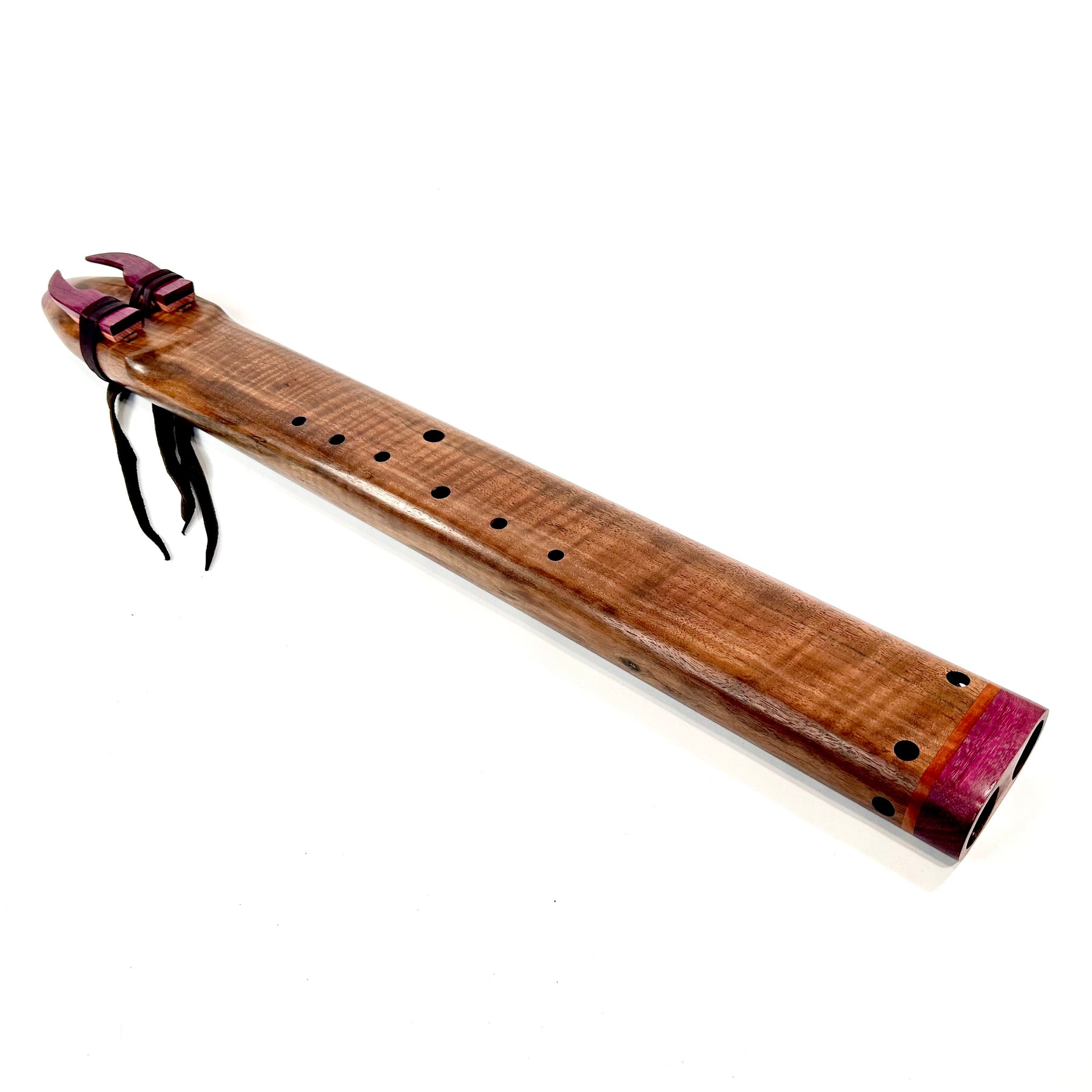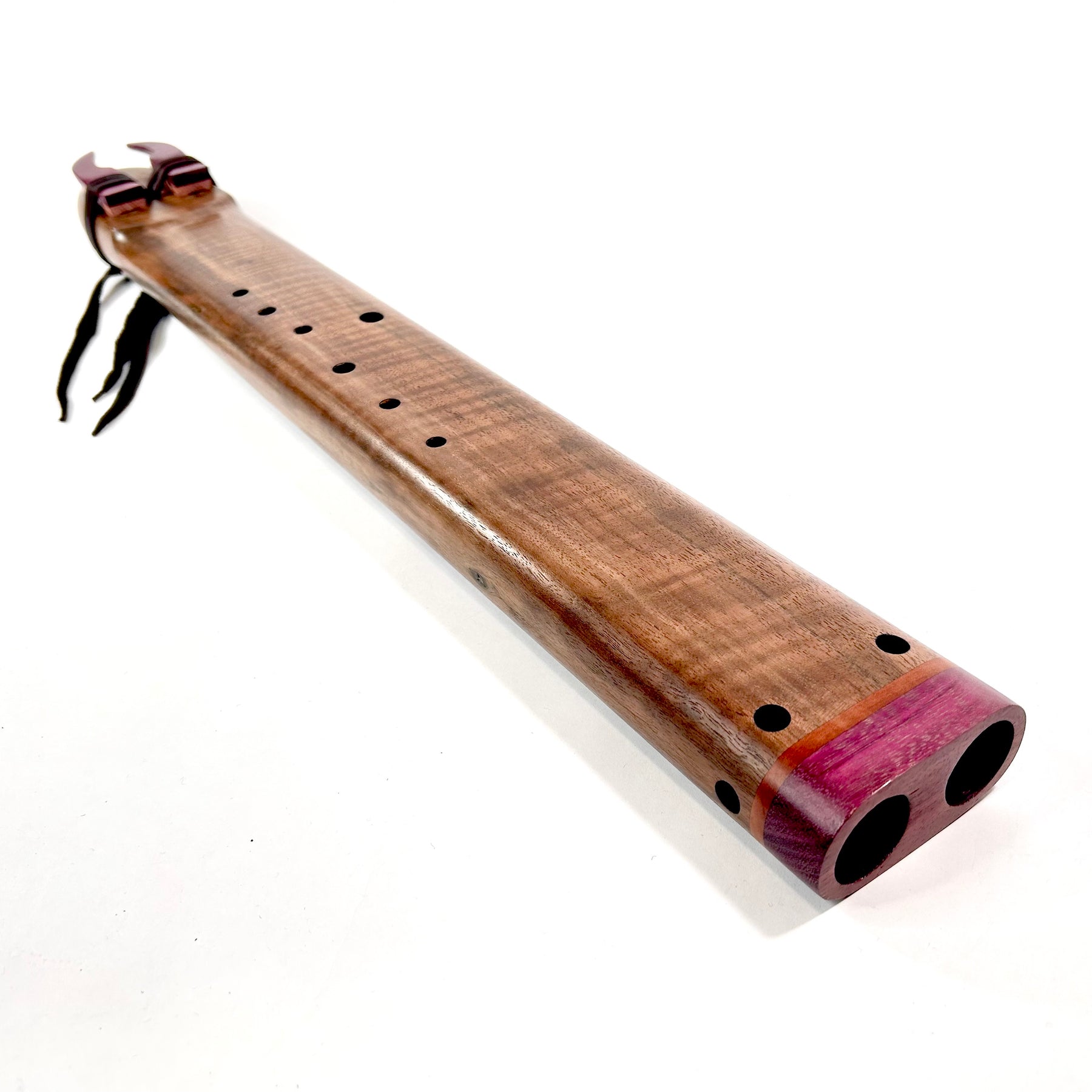 Here we have a stunning Curly Walnut Alternating Drone Flute with Purple heart end caps and madrone accents. This wood combination is jaw dropping and the bass tone is a must in anyone's collection( as long as you can handle the size) I'll let the video speak for this one! Just gorgeous!