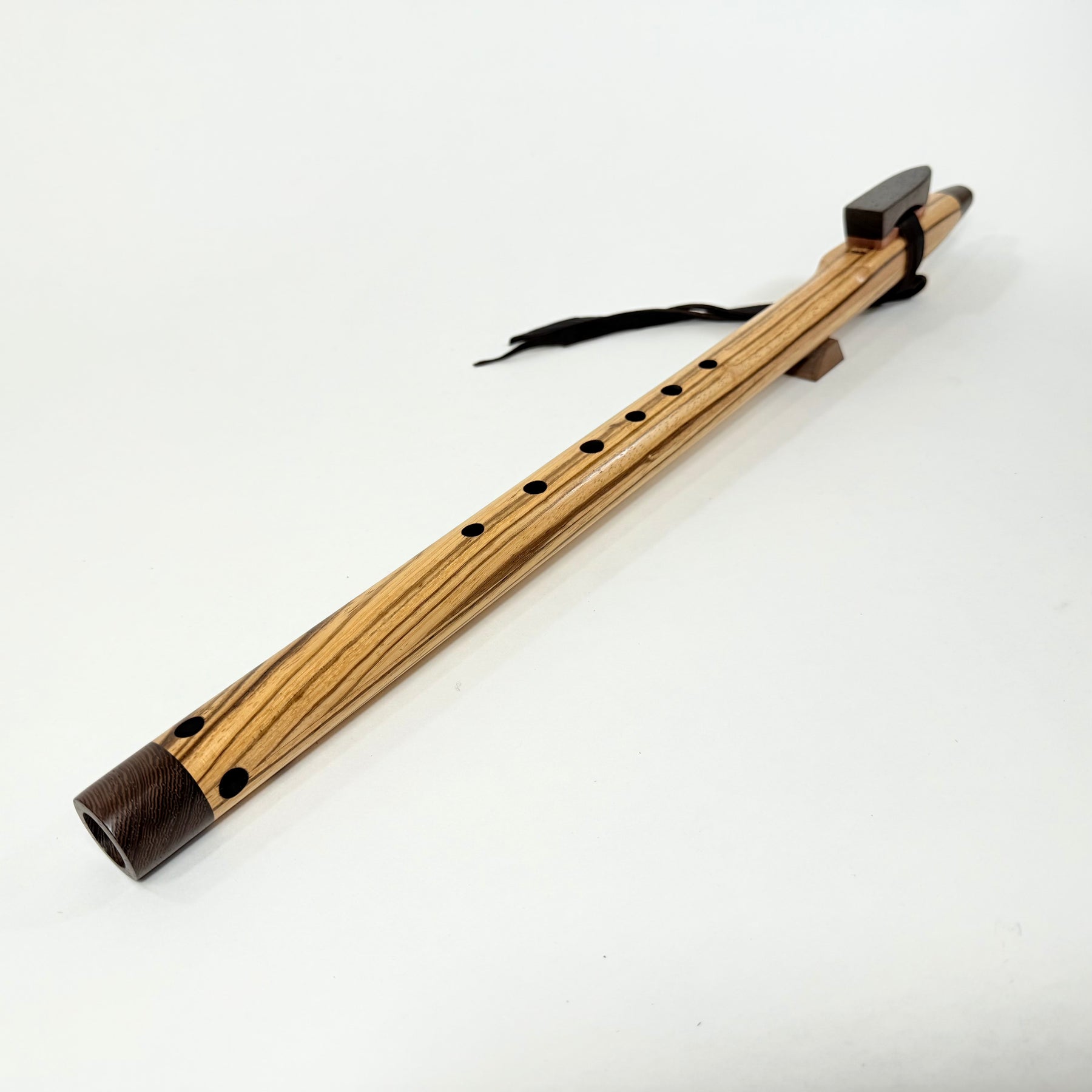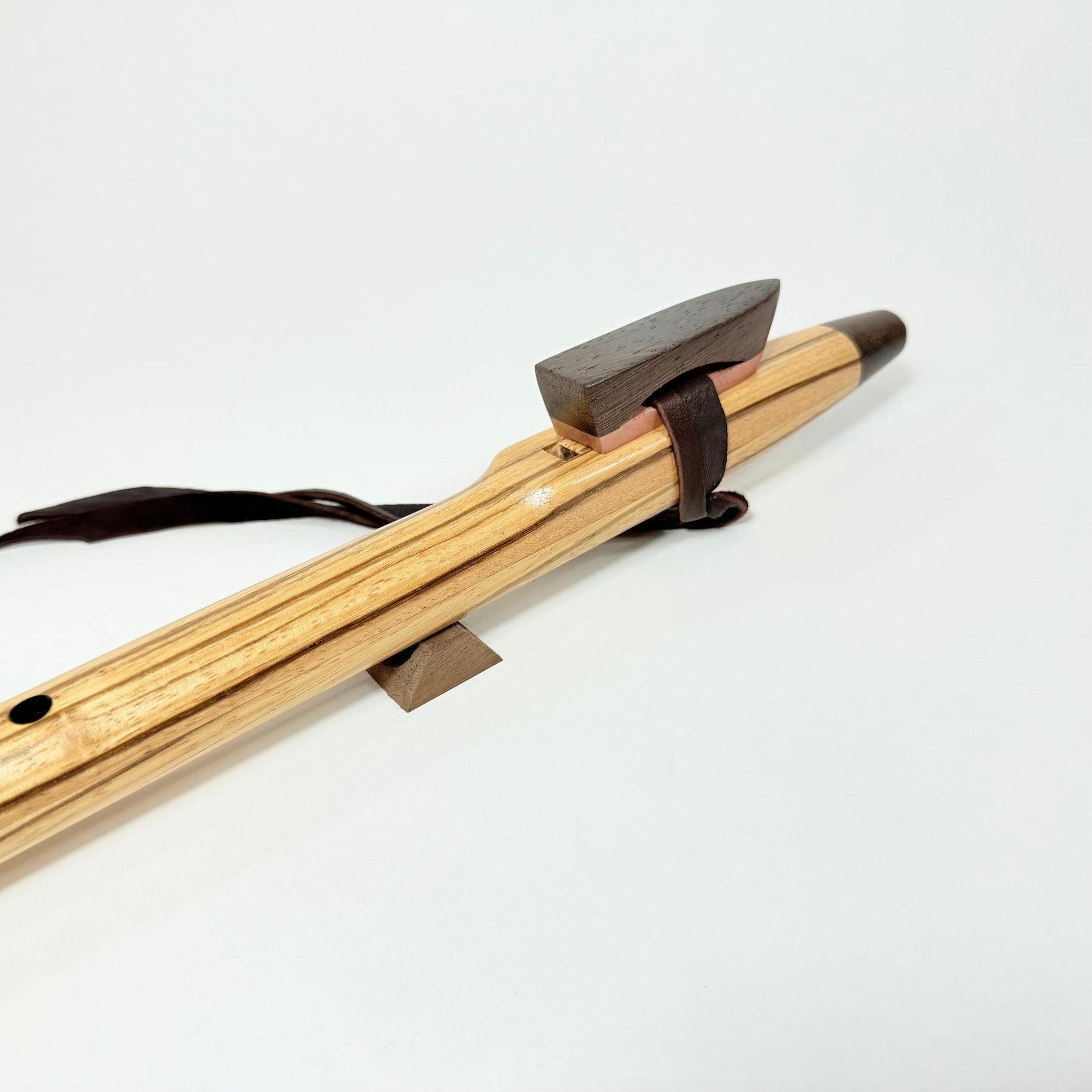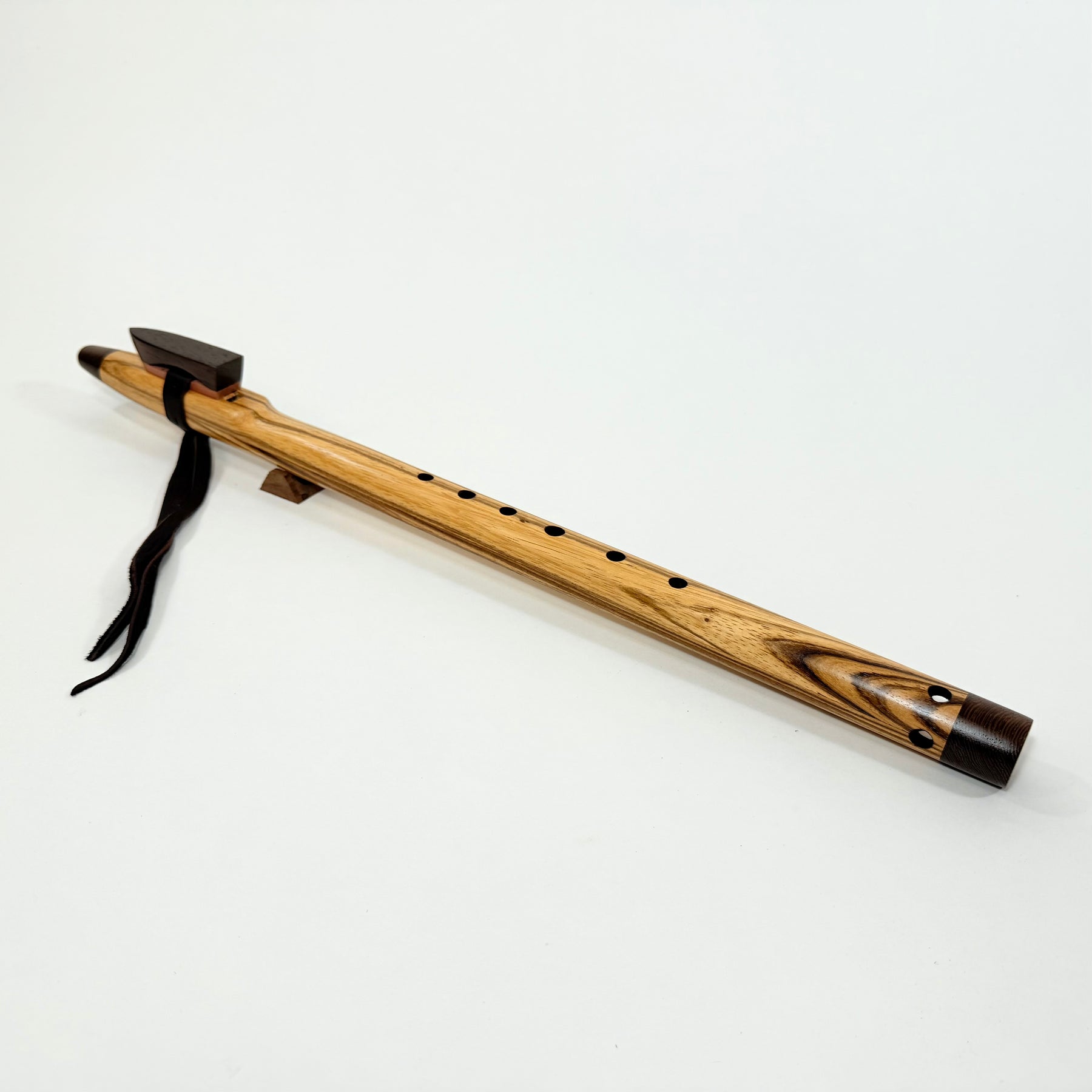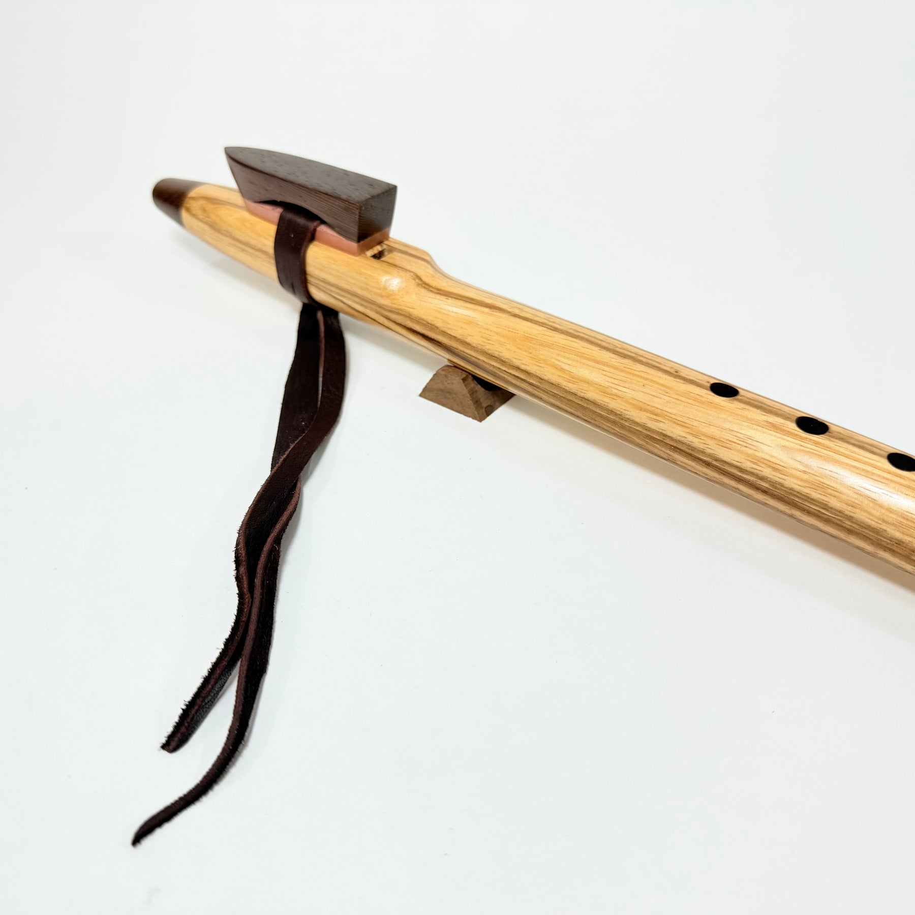 This is a gorgeous Native American style flute with stunning exotic woods and an excellent tone! The colors and design are absolutely beautiful, and the sound is clear and responsive! What a stunner. A minor is a must key for any flute collection.. it is great for guitar accompaniment etc, and ideal for all skill levels!