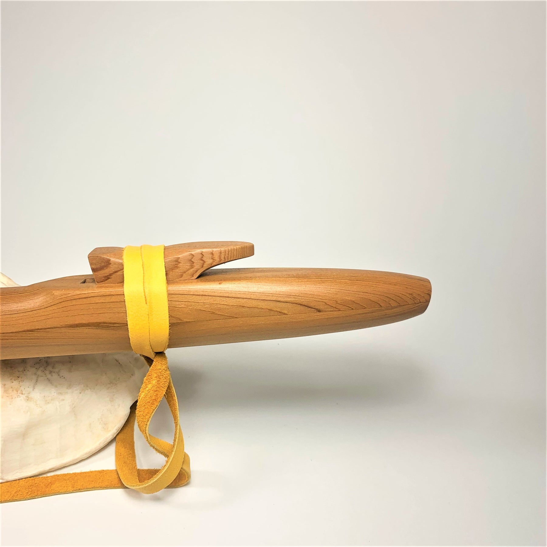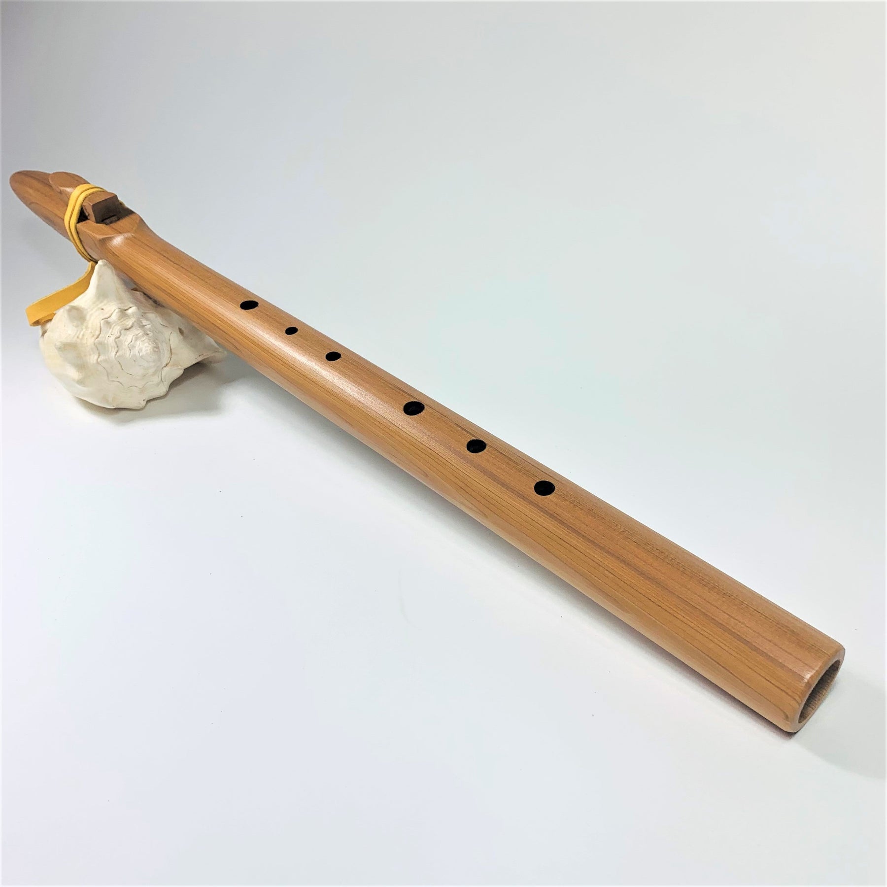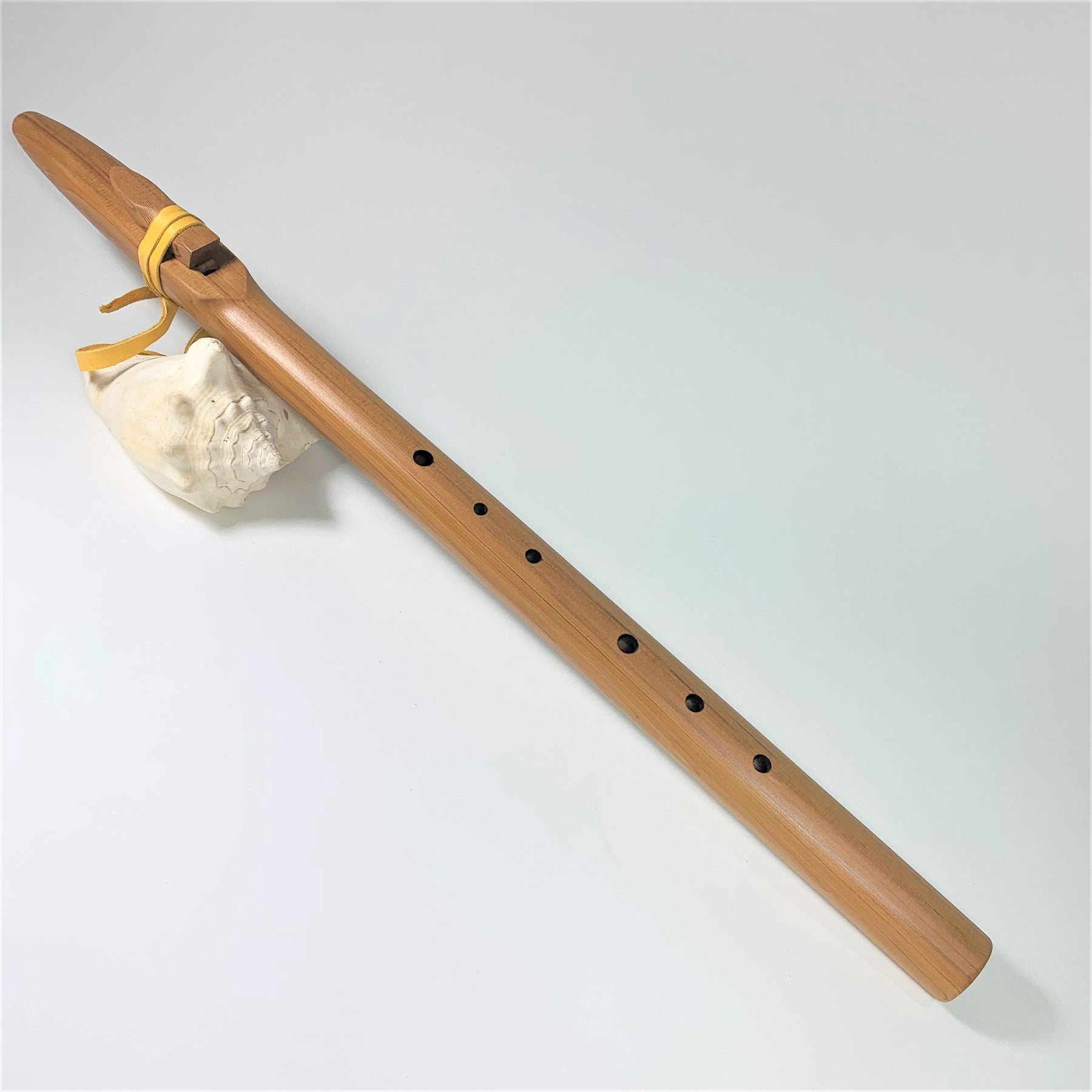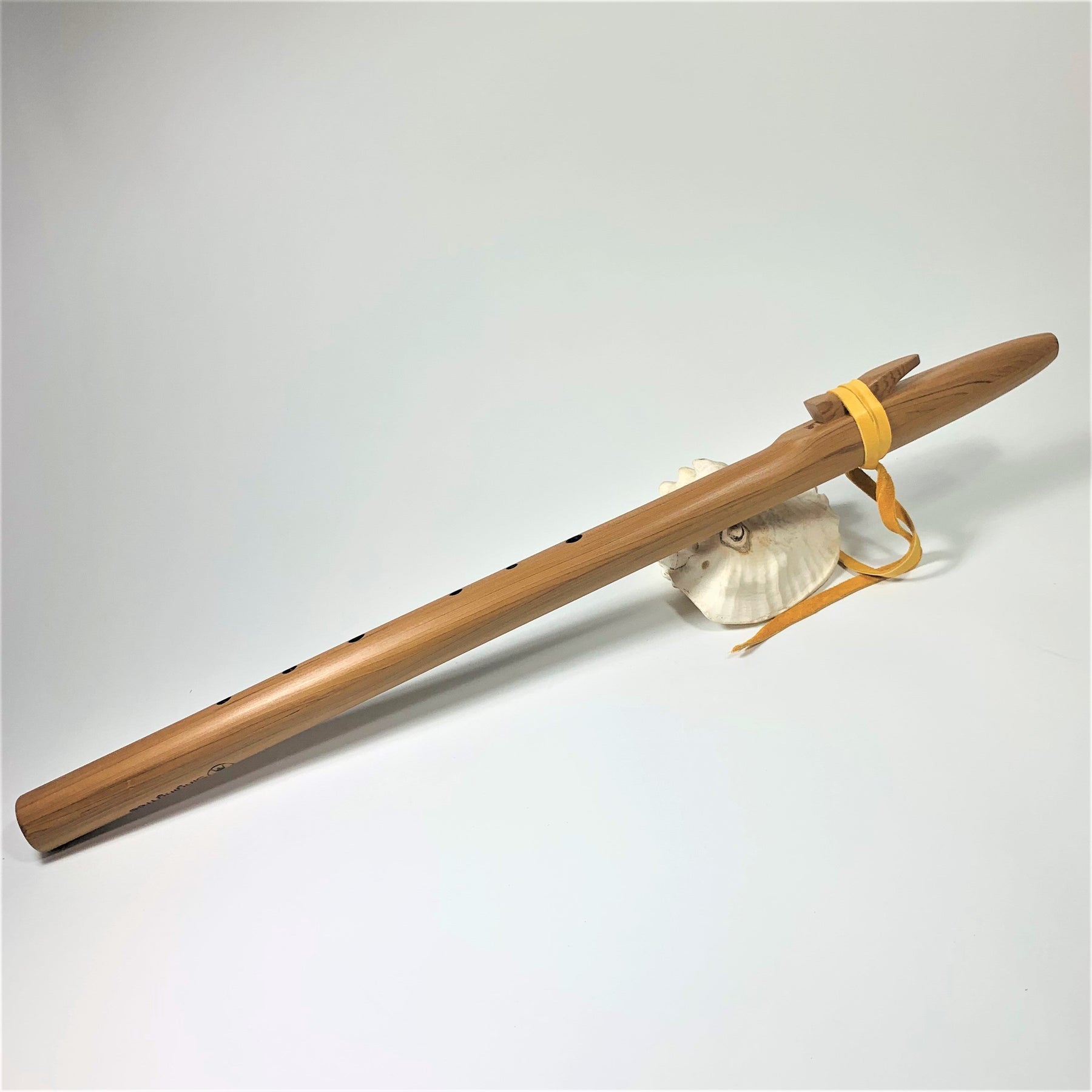 Here is a western cedar, native American style flute in a true Native American tuning! Dated back at least to the 1800's, this scale was popular amongst Kiowa, Ute , Lakota, and other plains tribes. This tuning has been highly sought after by our customers, and gives a more major sounding scale. We're loving the tone of this traditional plains Native tuning. This one is in G, with a beautiful mid ranged tone!